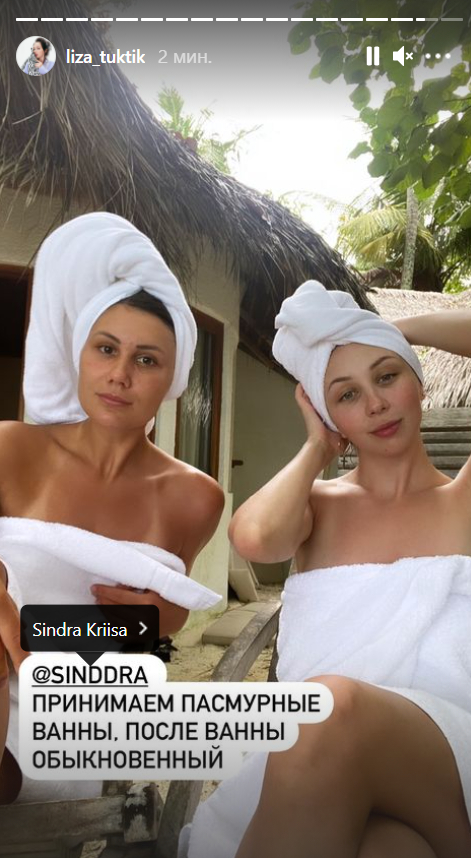 На снимке Елизавета вместе с эстонской фигуристкой Синдрой Криисой принимает пасмурные ванны. Спортсменки вместе отдыхают на Мальдивах.