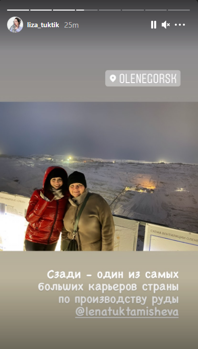 Одна из ведущих фигуристок сборной России Елизавета Туктамышева посетила Оленегорск, город в Мурманской области, где побывала на одном из самых больших карьеров страны по добыче руды
