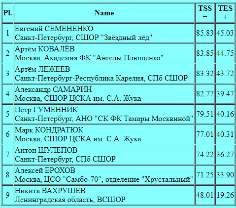 Ученик Мишина Семененко выиграл короткую программу на этапе КР в Москве: все результаты