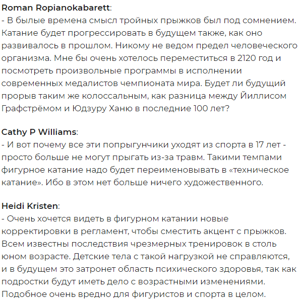 Читатели паблика устроили настоящую дискуссию, осудив тенденции, которые управляют современным фигурном катанием.