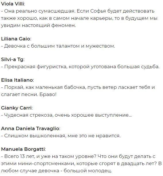 Также выступление юной россиянке высоко оценили и итальянские поклонники фигурного катания: