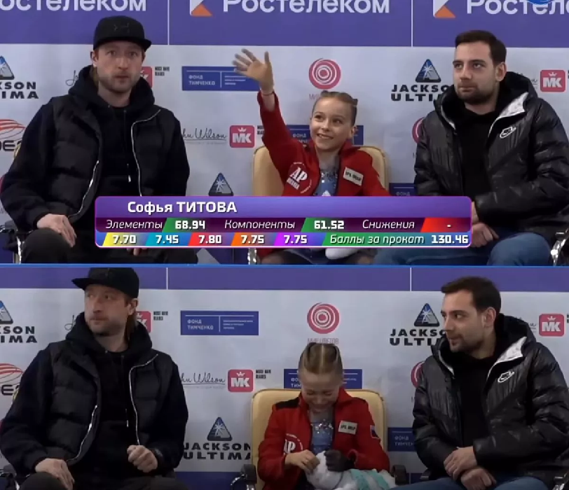 В итоговом протоколе ученице Тутберидзе поставили 256,60 балла за две программы, тогда как общая оценка Титовой составила 255,73 балла.