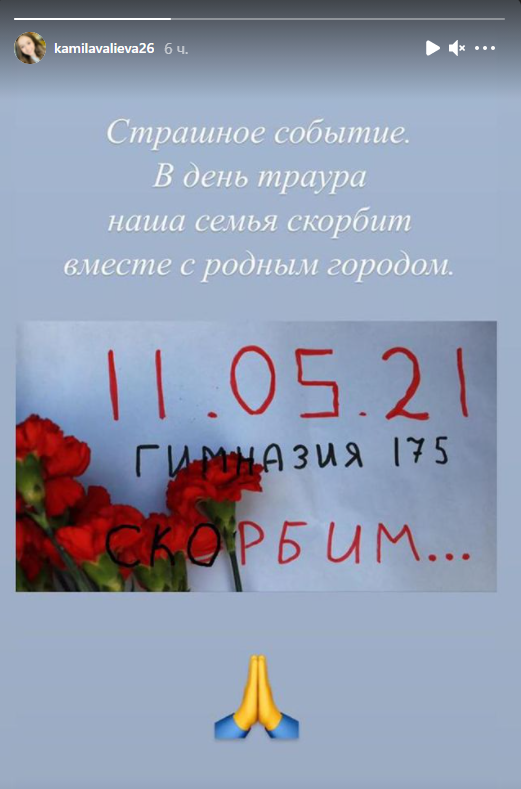Валиева разместила в Instagram публикацию об этом событии. В день траура наша семья скорбит вместе с родным городом, - написала Валиева.