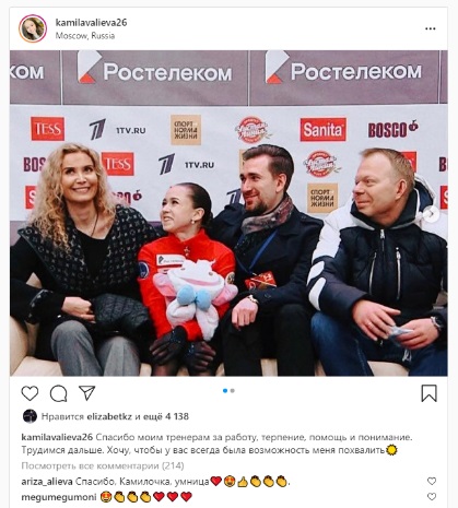 "Спасибо моим тренерам за работу, терпение, помощь и понимание. Трудимся дальше. Хочу, чтобы у вас всегда была возможность меня похвалить", - написала Валиева в Instagram.