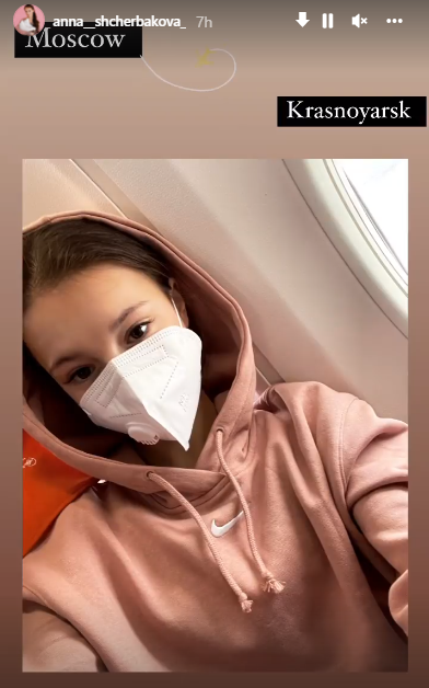 Позже Щербакова опубликовала снимок из самолёта, который отправился из Москвы в Красноярск.