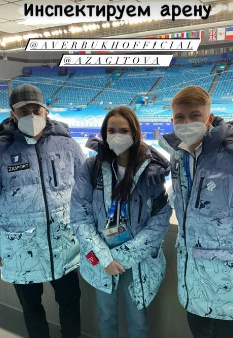 Ягудин показал фото с известной фигуристкой Алиной Загитовой и тренером Ильёй Авербухом. Они прибыли на олимпийскую арену в Пекине.