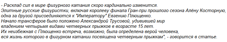 По мнению авторов статьи, уже в ближайшее время фигурное катание ждёт настоящая революция, которая связана с российской командой Евгению Плющенко (на фото).