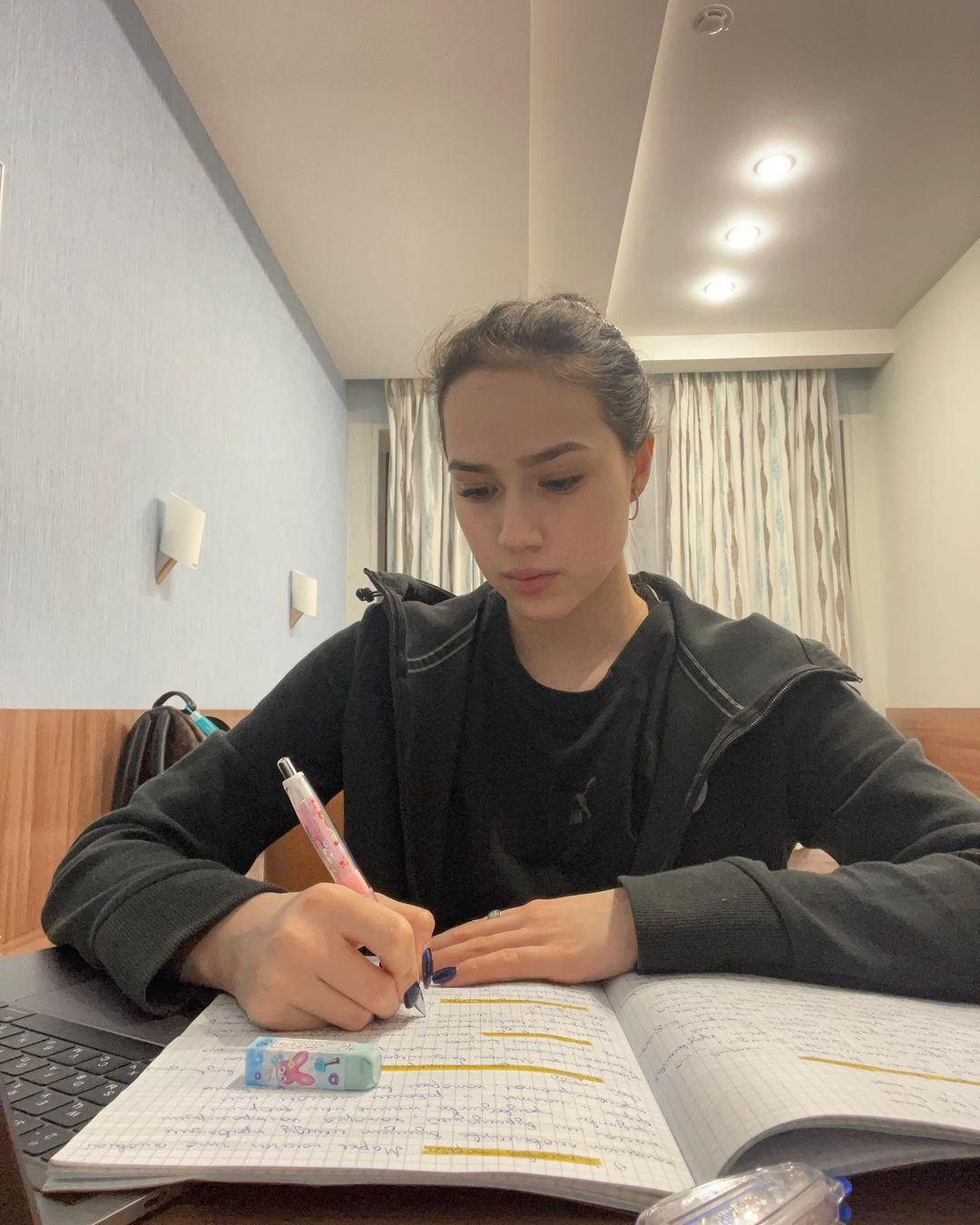 Известная российская фигуристка и олимпийская чемпионка Алина Загитова опубликовала в Instagram снимки с процессом подготовки к экзаменам.