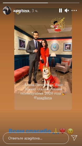 Загитова в Instagram отреагировала на приятную для себя новость. Она разместила совместное фото с Иваном Ургантом (его издание признало лучшим ведущим уходящего года) и написала: "Всем спасибо".