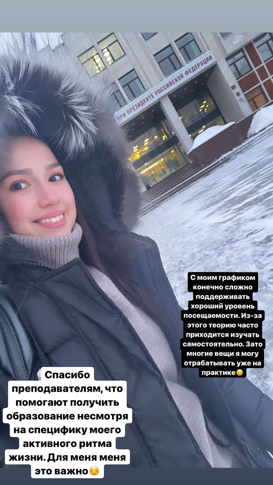 Во вторник, 21 декабря, прима мирового фигурного катания Алина Загитова опубликовала пост, посвящённый преподавателям Российской академии народного хозяйства и государственной службы (РАНХиГС), где 19-летняя фигуристка учиться на втором курсе