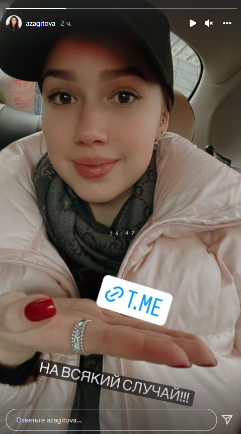 Загитова оставила ссылку на свой Telegram. Многие делают это в последнее время, так как опасаются отключения Youtube и Instagram на территории России.