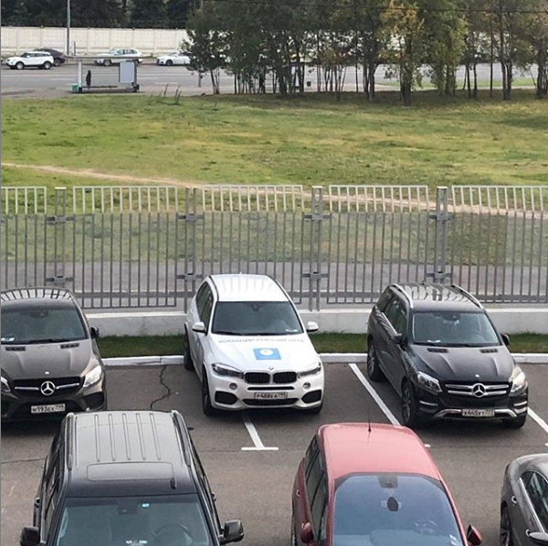 На представленом фото видно, что автомобиль заслуженного тренера занимает сразу два парковочных места.