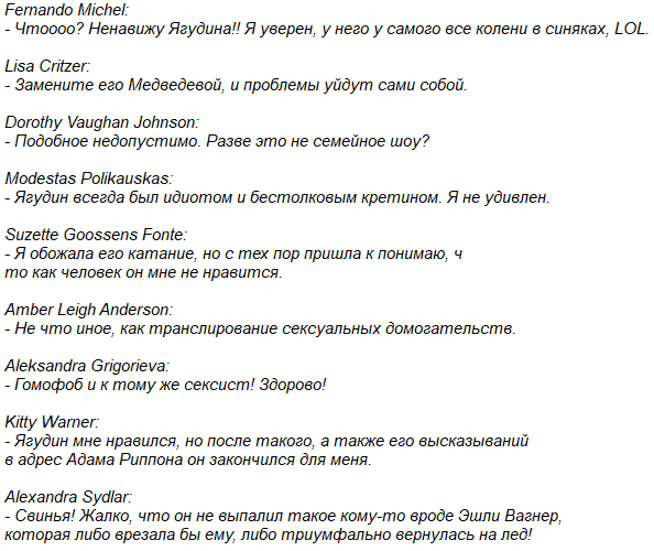 В комментариях под соответствующим постом в The Skating Lesson болельщики оставили море комментариев, устроив настоящую дискуссию о юморе Ягудина.