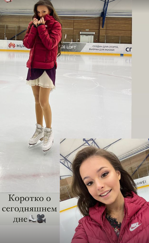 Щербакова кадры, сделанные на льду. На них можно увидеть, как она укуталась в куртку. Вероятно, проводилась какая-то видеосъёмка.