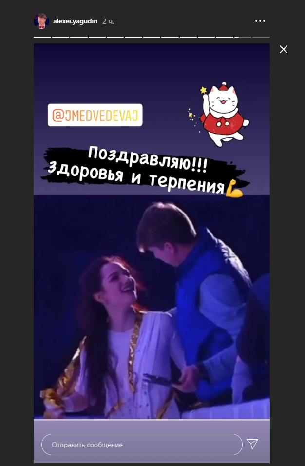 Sport.ru/ Фигурное катание. Олимпийский чемпион по фигурному катанию Алексей Ягудин выложил новую историю в Instagram. Он поздравил с днём рождения российскую фигуристку Евгению Медведева. Ягудин выложил совместное фото со спортсменкой и пожелал ей здоровья и терпения.