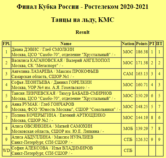 За два проката танцевальная пара заработала 186,38 балла (74,22 — 112,16). Серебро сегодня досталось дуэту Василиса Кагановская и Валерий Ангелопол (171,3).