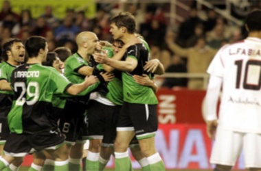 Это был матч “высоких” команд, которые имеют в своём активе Зигича (203см) и Кануте(195см). Два “футбольных столба” должны были встретиться друг против друга в 20-ом туре. И благодаря тому, что Кануте вышел на матч на уколах, это противостояние стало возможным. Первый гол, вопреки логике, забили гости. Зигич пробил головой после подачи с углового. Палоп, продемонстрировал свою нечеловеческую реакцию, вытащил мяч из под перекладины, но удача в этот момент была на стороне гостей. Сесар Навас первый оказался на добивании и переправил мяч в сетку без особых проблем. Наградив “Расинг” забитым мячом, удача перешла на сторону хозяев. Серрано сфолил на Адриано и получил красную карточку. Нарушение явно не тянуло на максимальное наказание, но судья на поле главный, у него свисток. “Севилья” получила отличный шанс взять игру в свои руки и дожать соперника. Но гости были другого мнения и на 46-ой минуте Зигич воспользовался своим ростом и удвоил разницу в счёте. Удачное использование контратаки “Расингом” и связка Мунитис - Зигич даёт о себе знать. В оставшееся время клуб из Сантандера мог забивать ещё, убегая в многочисленные контратаки, но не получилось. А вот хозяева забили. Отличился Чевантон, но сделал это латиноамериканец из положения вне игры. Подопечные Маноло Хименеса закончили матч всего с двумя центральными защитниками (вместо Эскуде и Драгутиновича вышли Пуки и Чевантон), доказав то, что количественное преимущество не всегда переходит в качественное. Проиграв на своём поле, “Севилья” потеряла шанс закончить 20-ый тур на втором позиции, уступив столь почётное место “королям” из Мадрида.
