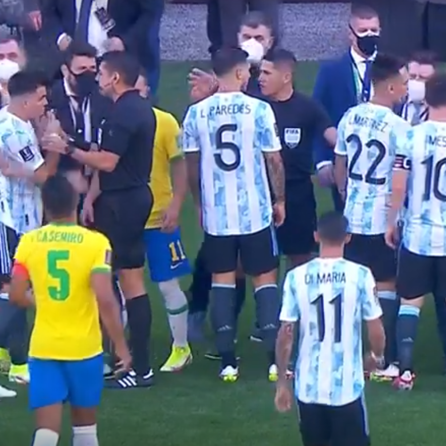 Sport.ru / Футбол. Во время матча квалификации ЧМ-2022 Бразилия - Аргентина произошёл скандальный инцидент. После начала матча футболисты аргентинской сборной покинули поле.