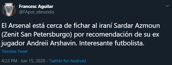 По информации Агиляра, "канониры" уже близки к трансферу 25-летнего иранца. Любопытно, что к потенциальному переезду Азмуна в Лондон приложил руку бывший футболист "Арсенала" и "Зенита" Андрей Аршавин.