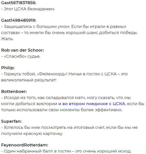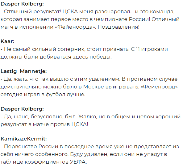 Сразу после поединка болельщики "Фейеноорд" устроили настоящую дискуссию на сайте FR-Fans.nl о вояже своих любимцев в белокаменную.