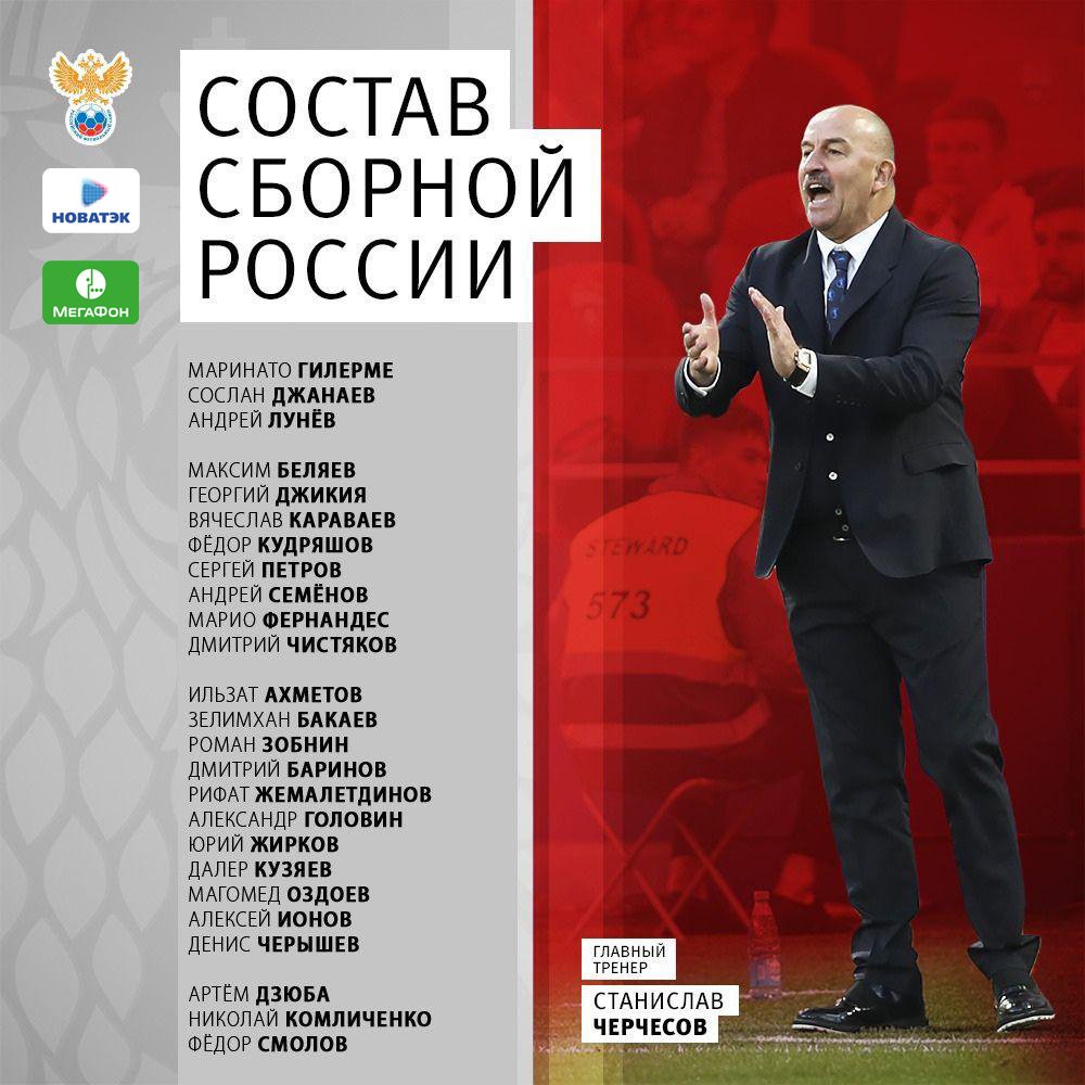 Черчесов огласил состав сборной России на квалификационные матчи к чемпионату Европы 2020 года