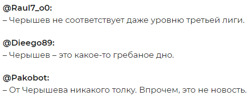 Досталось Денису и от портала Superdeporte, журналисты которого отметили, что все навесы от Черышева оказались плохими, а ведь именно ради них его выпустили на поле.