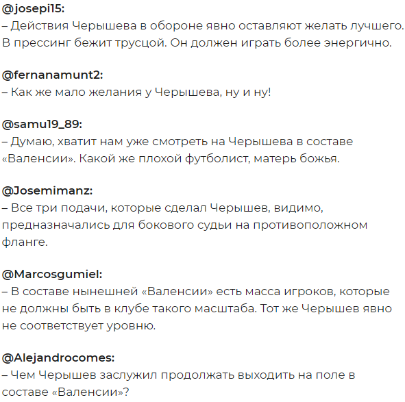 Негодовали относительно игры Дениса и поклонники "Валенсии", оставившие свои комментарии под публикациями СМИ: