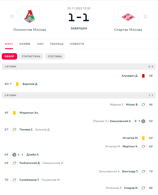 Классный матч выдали "Локомотив" и "Спартак". Красно-белые в первом тайме были поинтереснее, но карты смешало удаление Даниила Хлусевича в конце первого тайма. Несмотря на меньшинство, "Спартак" сумел забить стараниями Антона Зиньковского. Но "Локомотив" отыгрался. Естественно, что отличился Артём Дзюба, как иначе?