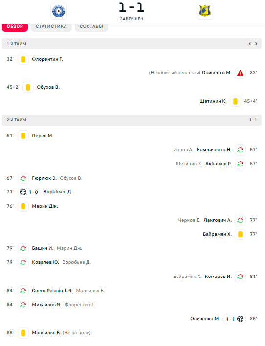 Очень бодрый матч выдали "Оренбург" и "Ростов". Команды устроили обмен ударами, создав моментов для счёта 3:3 или 4:4. Но в итоге обошлись менее результативной ничьей - 1:1. Причём недовольны остались оба. "Ростов" ещё в первом тайме не реализовал пенальти, а "Оренбург" в концовке упустил немало моментов.