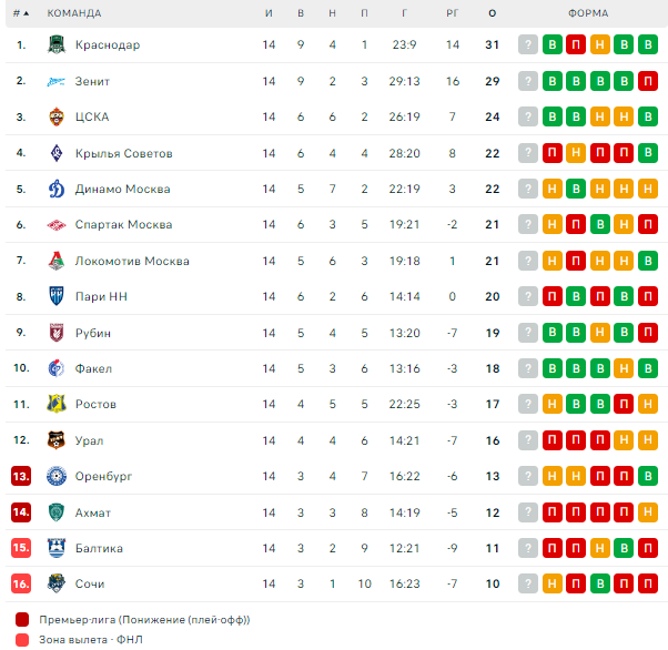 В понедельник, 6 ноября, состоялись заключительные матчи 14-го тура РПЛ. Самое время подводить итоги.