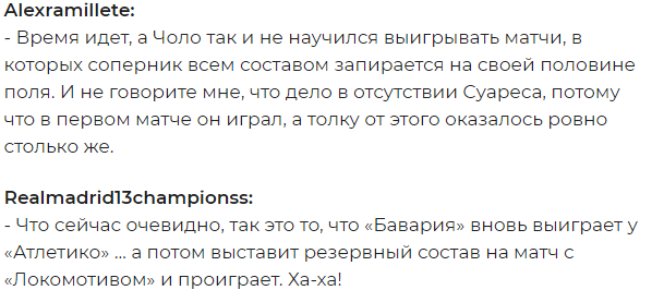 Сразу после матча популярная газета Marca опубликовала заметку, посвящённую поединку на "Ванда Метрополитано", под которой болельщики испанской командой, расстроенные результатом своих любимчиков, высказались о наболевшем:
