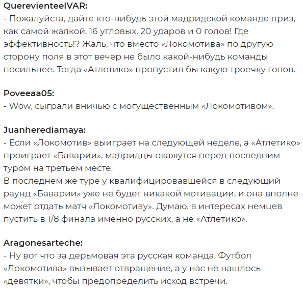 Читатели испанской Marca - о матче "Атлетико" - "Локомотив": "Футбол русских вызывает отвращение"