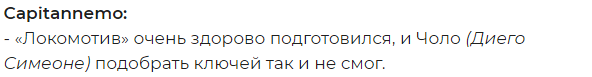 Sport.ru/ Футбол. Накануне в Мадриде состоялся поединок четвёртого тура Лиги чемпионов между местным "Атлетико" и московским "Локомотивом".