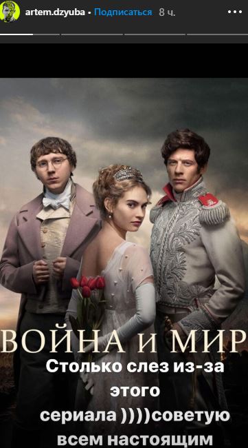 31-летний форвард питерского "Зенита" и сборной России Артём Дзюба обратился к фанатам через свою страницу в инстаграм. Футболист посоветовал посмотреть "Войну и мир".