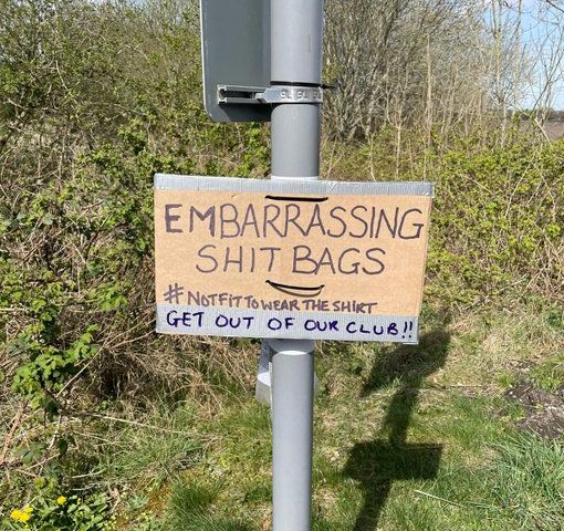 Sport.ru / Футбол Болельщики "Манчестер Юнайтед", недовольные последними результатами клуба, прицепили на столб возле тренировочной базы клуба табличку с надписью "Embarassing shit bags", что в переводе означает "Позорные мешки с дерьмом".