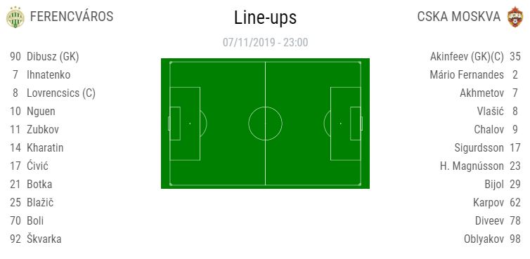 "Ференцварош" - ЦСКА: стартовые составы команд