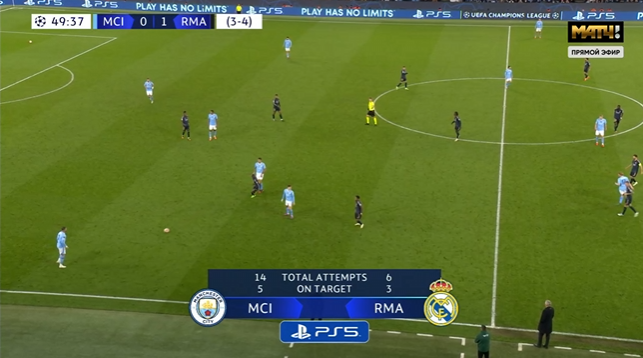Тяжело сейчас "Реалу". Никак мадридцы не могут отойти от своей штрафной. То и дело теряют мяч. Работает прессинг "Сити".
