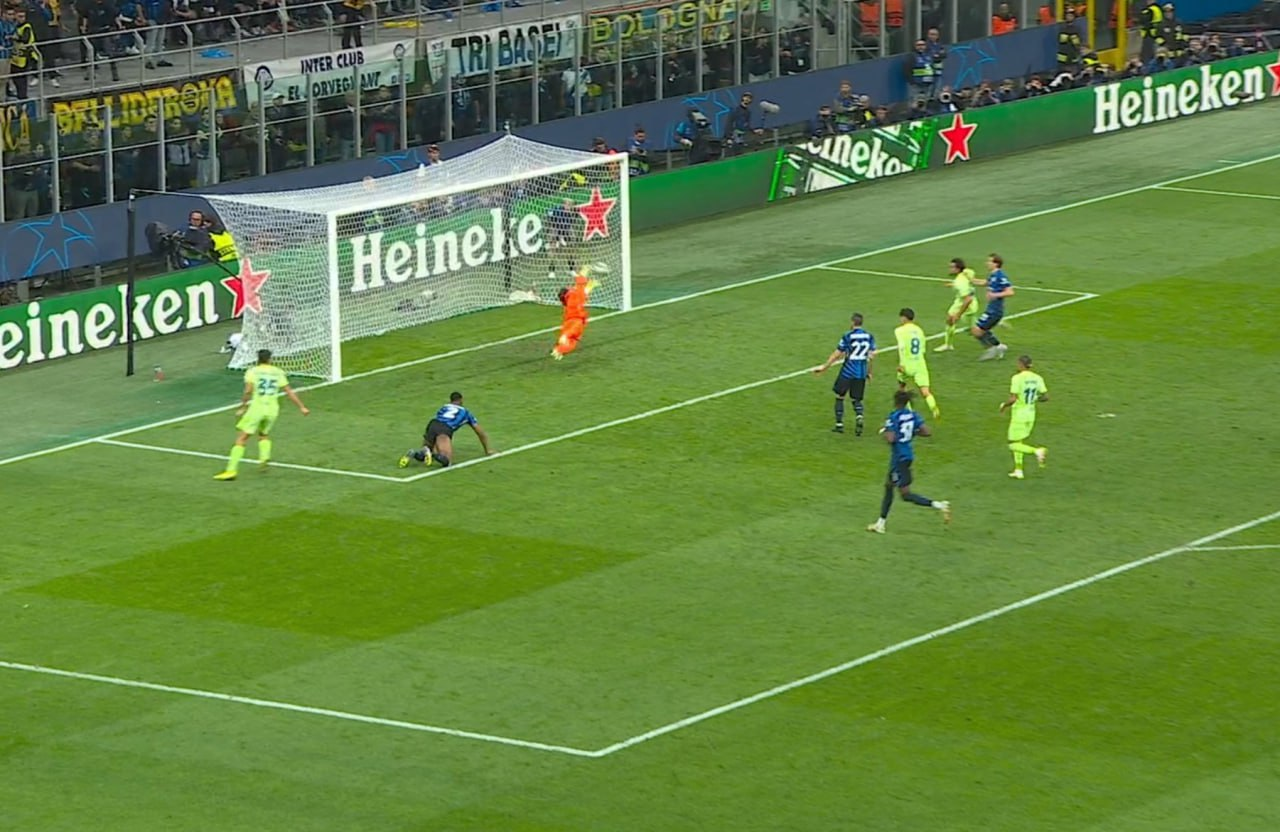 Бастони разогнал атаку пасом налево на Мхитаряна, Генрих добежал до угла штрафной и простреливал на дальнюю штангу под замыкание Мартинесу — отчаянным подкатом Иньиго спас команду!