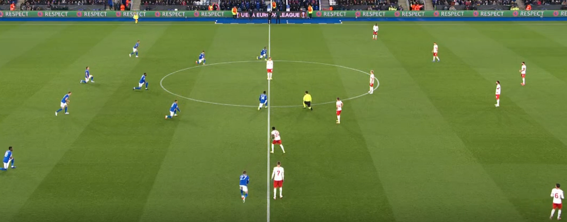 Перед стартовым свистком футболисты "Лестера" встали на одно колена, тем самым поддержав акцию движения по борьбе с расизмом.