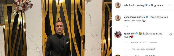 "Бабка старая, не чуди", — такой комментарий оставил под публикацией Ещенко его бывший одноклубник Денис Глушаков.