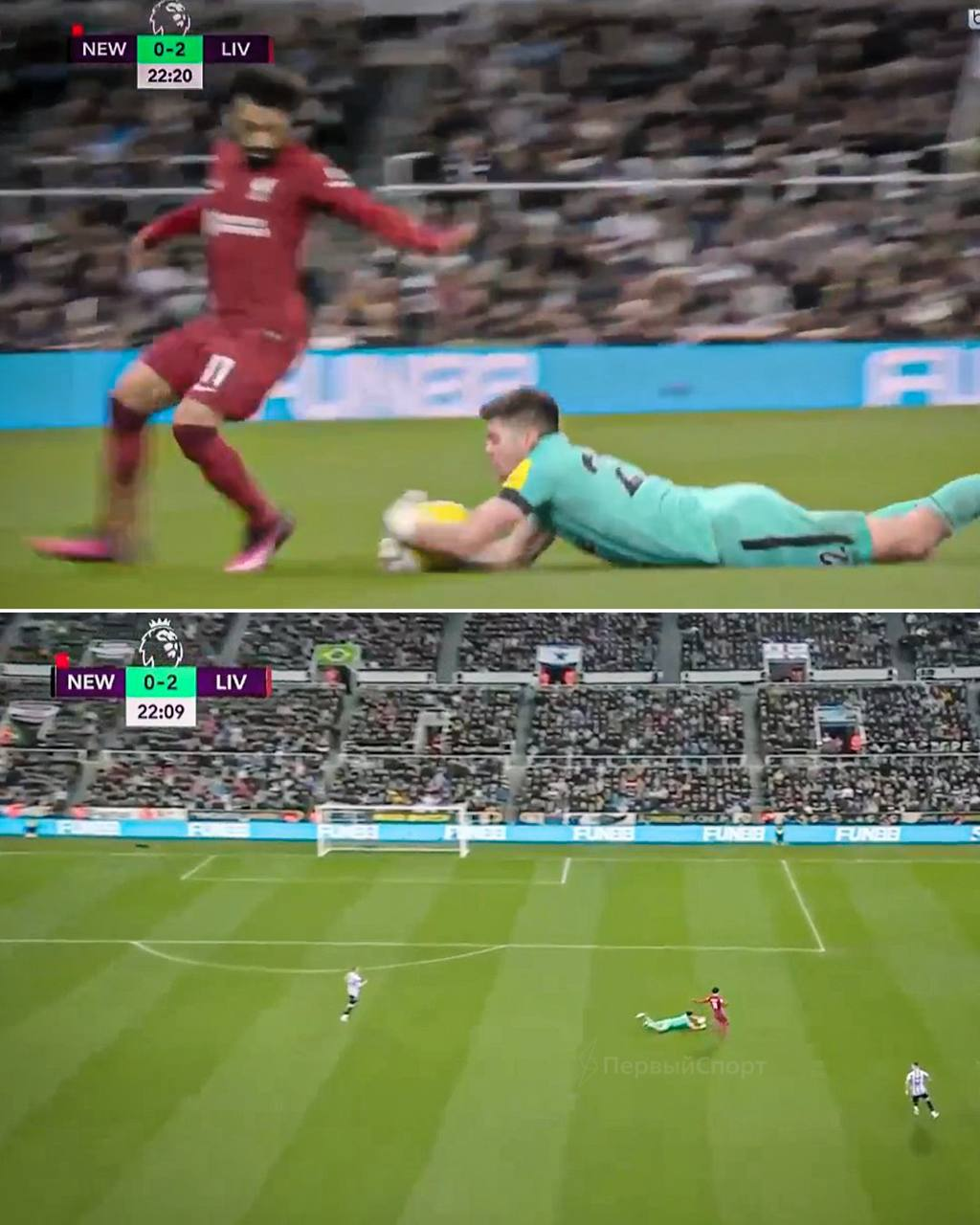Голкипер "Ньюкасла" в матче с "Ливерпулем" схватил мяч руками далеко за пределами штрафной (ФОТО)