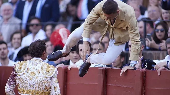 По правилам корриды, выход зрителей на арену запрещён. За это полагается штраф от 30 до 60 тысяч евро.