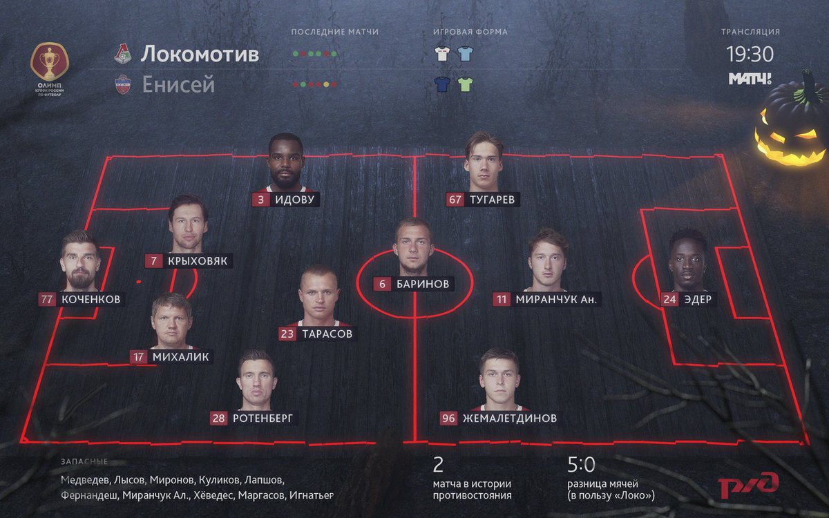 Ещё раз приветствую вас, дорогие друзья! Около 10 минут остаётся до начала матча между "Локомотивом" и "Енисеем". Матч, как и три других поединка, проходит в День Всех Святых, более знакомый в народе как Хэллоуин. И вокруг этого матча создан некий антураж. Сейчас увидите, какой именно...