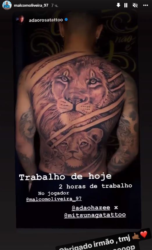 Форвард "Зенита" и сборной Бразилии Малком сделал на спине новое тату.