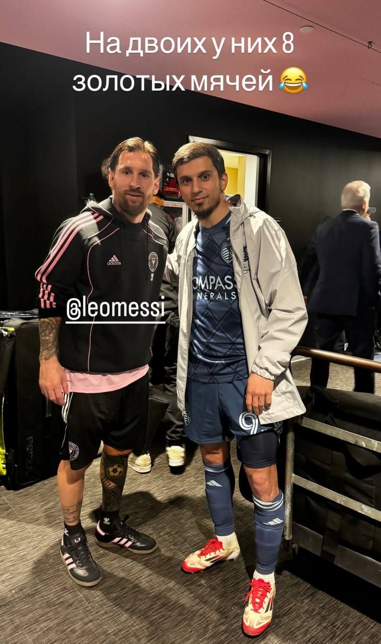 Sport.ru / Футбол. Российский форвард команды "Спортинг Канзас-Сити" Магомед-Шапи Сулейманов опубликовал новую фотографию в своих социальных сетях. На ней он предстал с восьмикратным обладателем награды "золотой мяч", легендарным аргентинским нападающим Лионелем Месси.