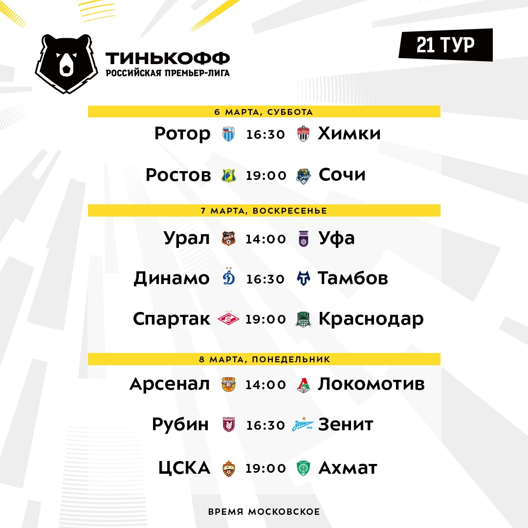 Sport.ru/ Футбол. Сегодня, 30 декабря, руководство РПЛ сформировало расписание на первые четыре тура РПЛ в 2021 году.