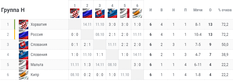 Напрямую в Катар отправится только победитель отборочной группы, а это значит, что терять очки России больше нельзя. На сегодняшний день лидирует в группе Хорватия, опережающая Россию по дополнительным показателям, однако если завтра команда Карпина проиграет словакам, то хорватам будет достаточно в параллельном матче обыграть скромный Кипр, чтобы крепко закрепиться на лидерской строке, откуда выбить команду Златко Далича будет уже практически невозможно.