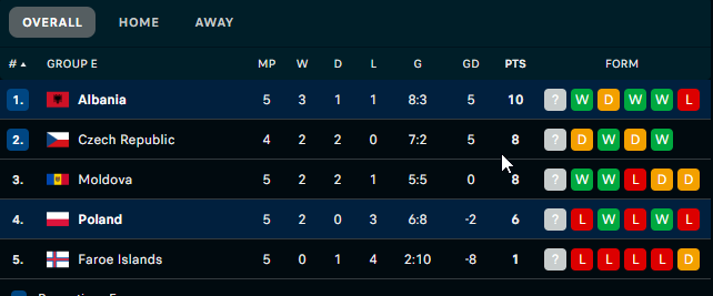 Шансы на сенсационный выход в плей-офф сохраняет сборная Молдавии. Молдаване в очередном матче разобрались с командой Фарерских островов, хоть было и очень тяжело (1:0). Понятно, что пока говорить о перспективах рановато, но, по крайней мере, Молдавия остаётся в борьбе.