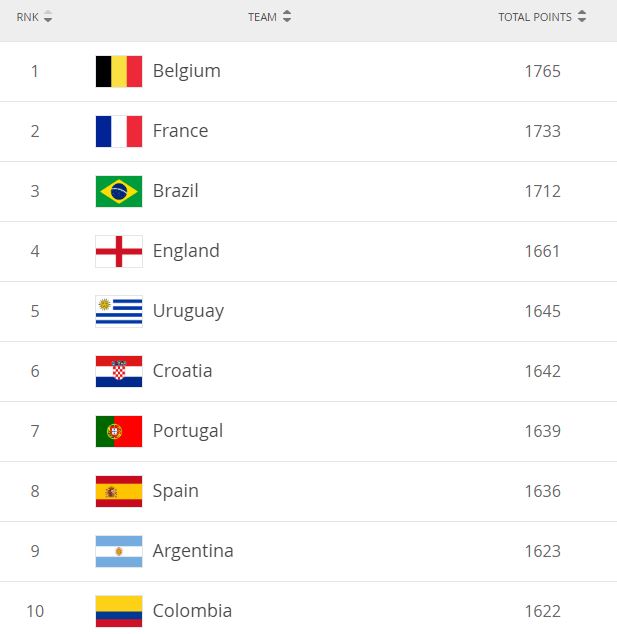 В топ-10 изменений нет. Бельгийцы остаются лидерами.