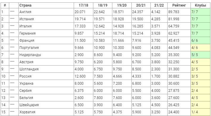 Если учесть тот факт, что в мае сгорят очки, набранные клубами РПЛ четыре года назад (12,6 баллов), то картина для России складывается непростая: нашим клубам непременно нужно набирать заветные баллы, чтобы начать отрабатывать те очки, которые мы без вариантов потеряем уже весной.